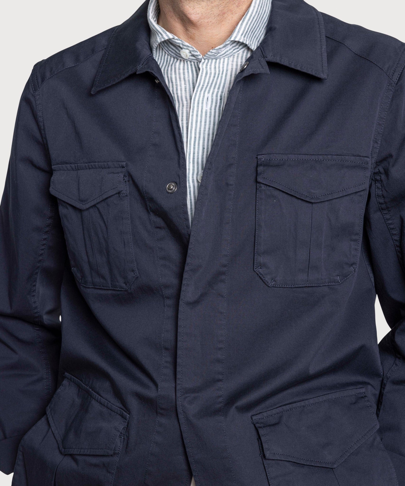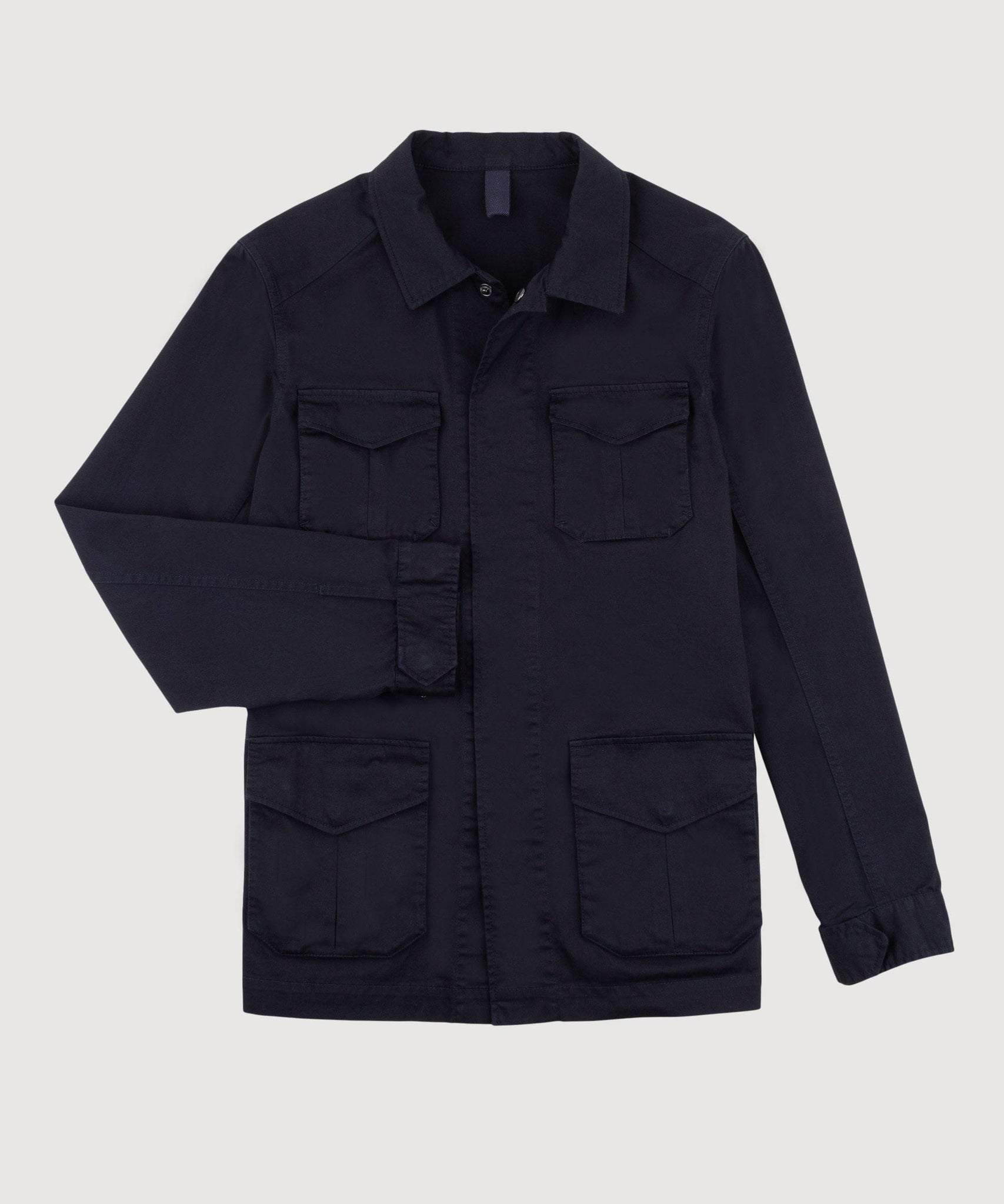 Made from Italian cotton and a touch of elastane, washed for softness and comfort. The design is based on the Jungle Fatigue Jacket and is easy to pair with any casual outfit. Layer over your favourite shirt, t-shirt or sweater for an effortless, laid back look. Made in Portugal, unlined construction and suitable from early Spring to late Autumn.