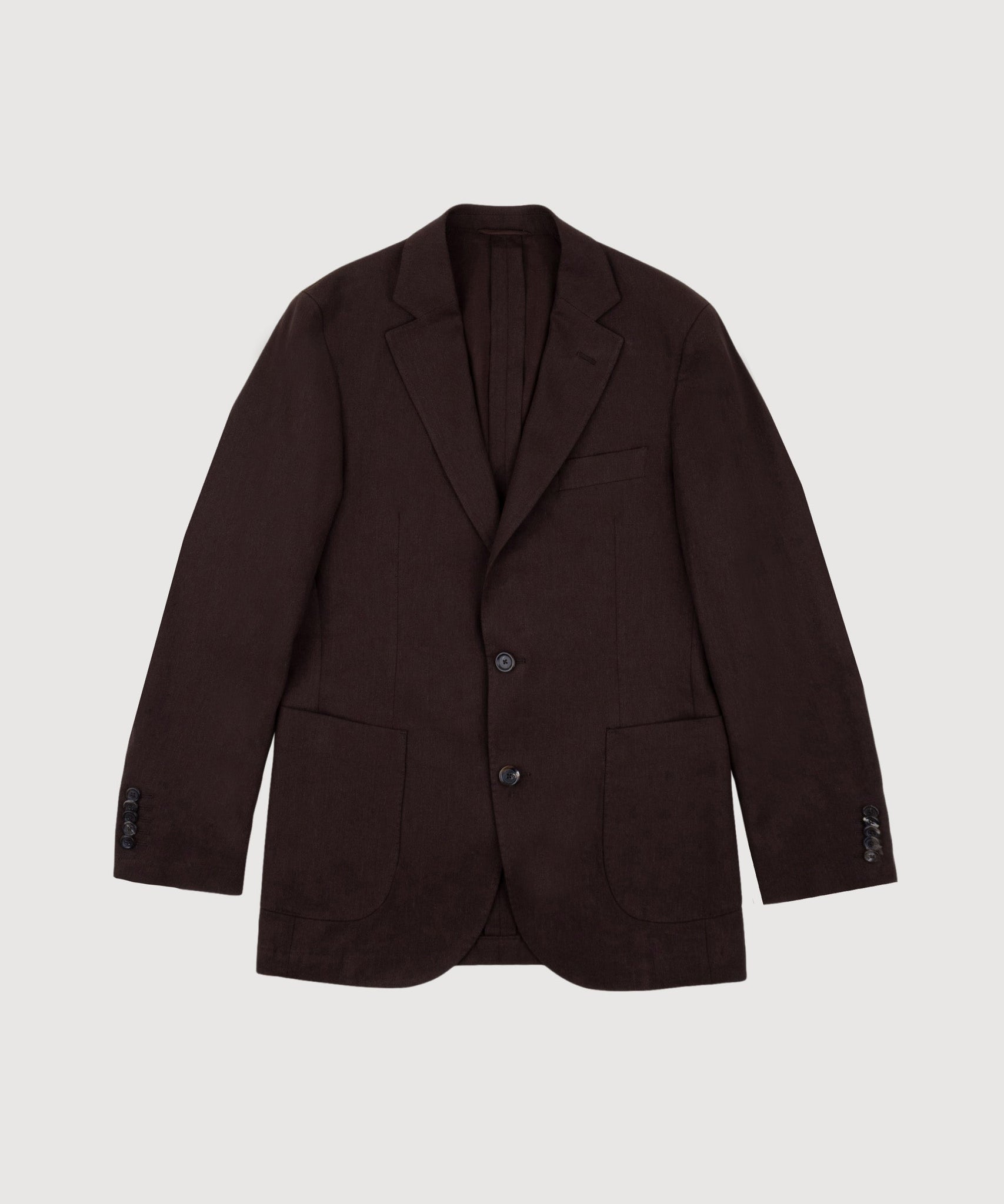 Crafted with a notched lapel, two-button closure, and unlined interior for maximum airflow and comfort. Features patch pockets, functional sleeve buttons, and a double vent at the back. The relaxed drape of the linen-cotton blend creates an effortlessly elegant silhouette that pairs with tailored trousers or chinos.