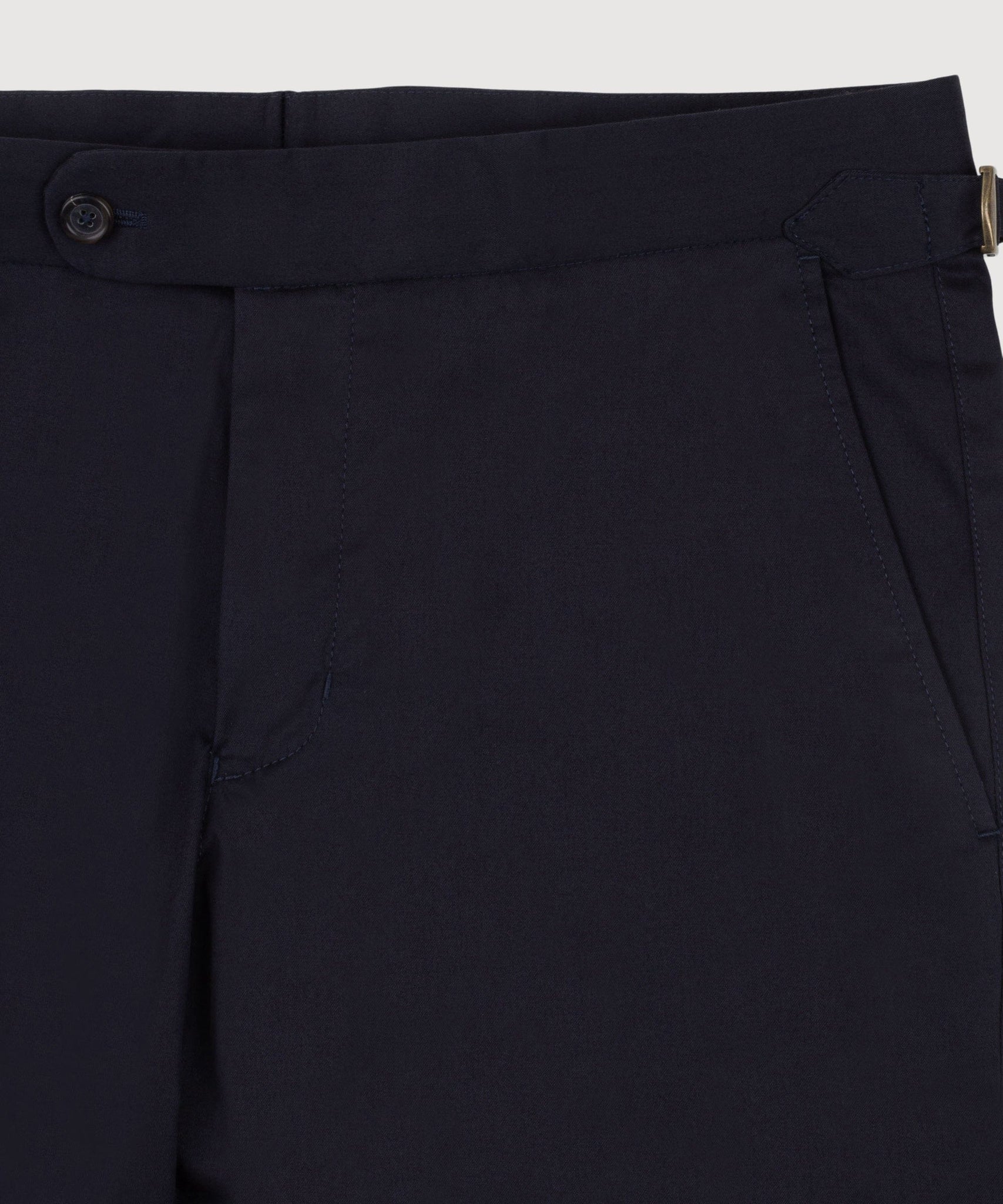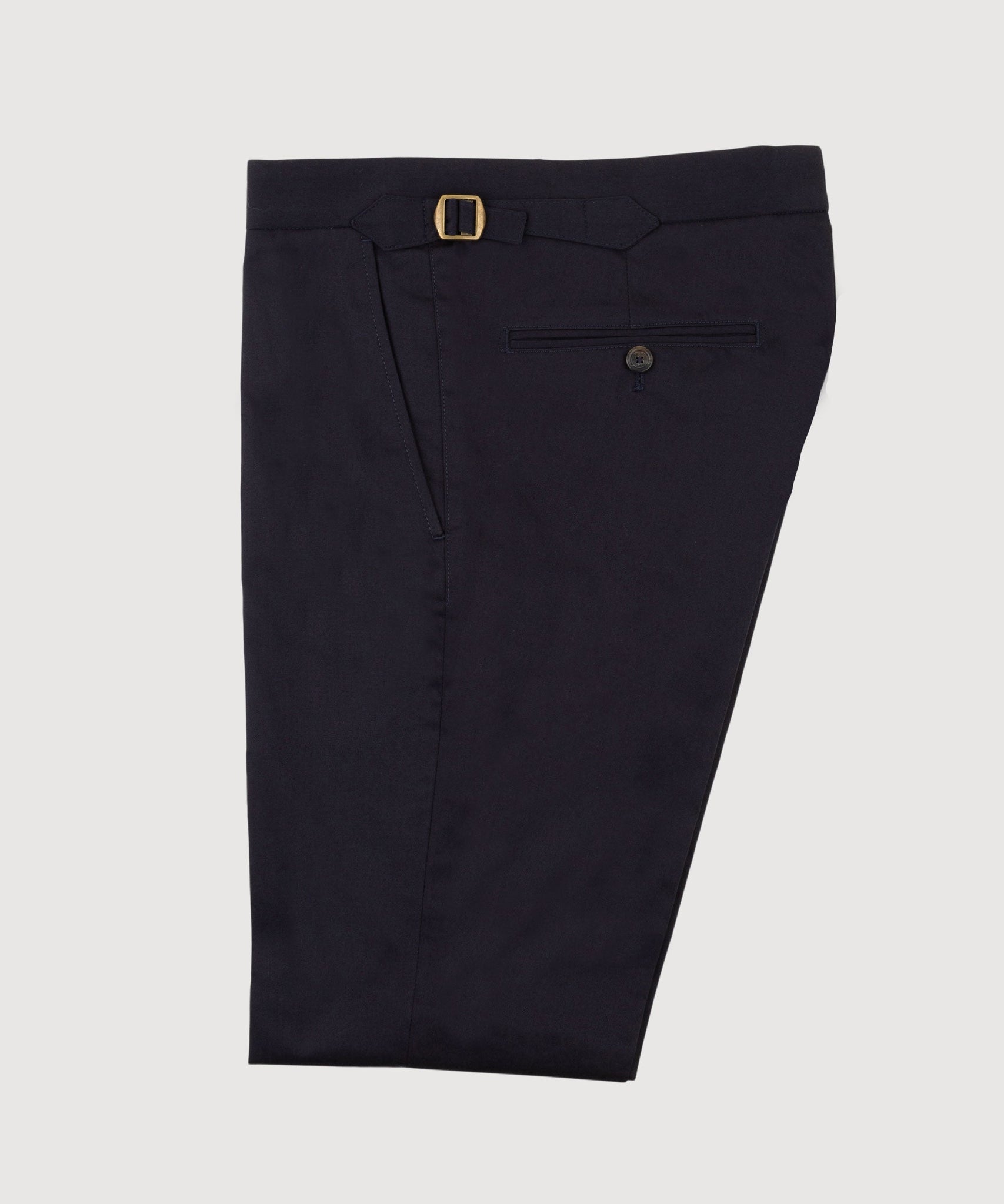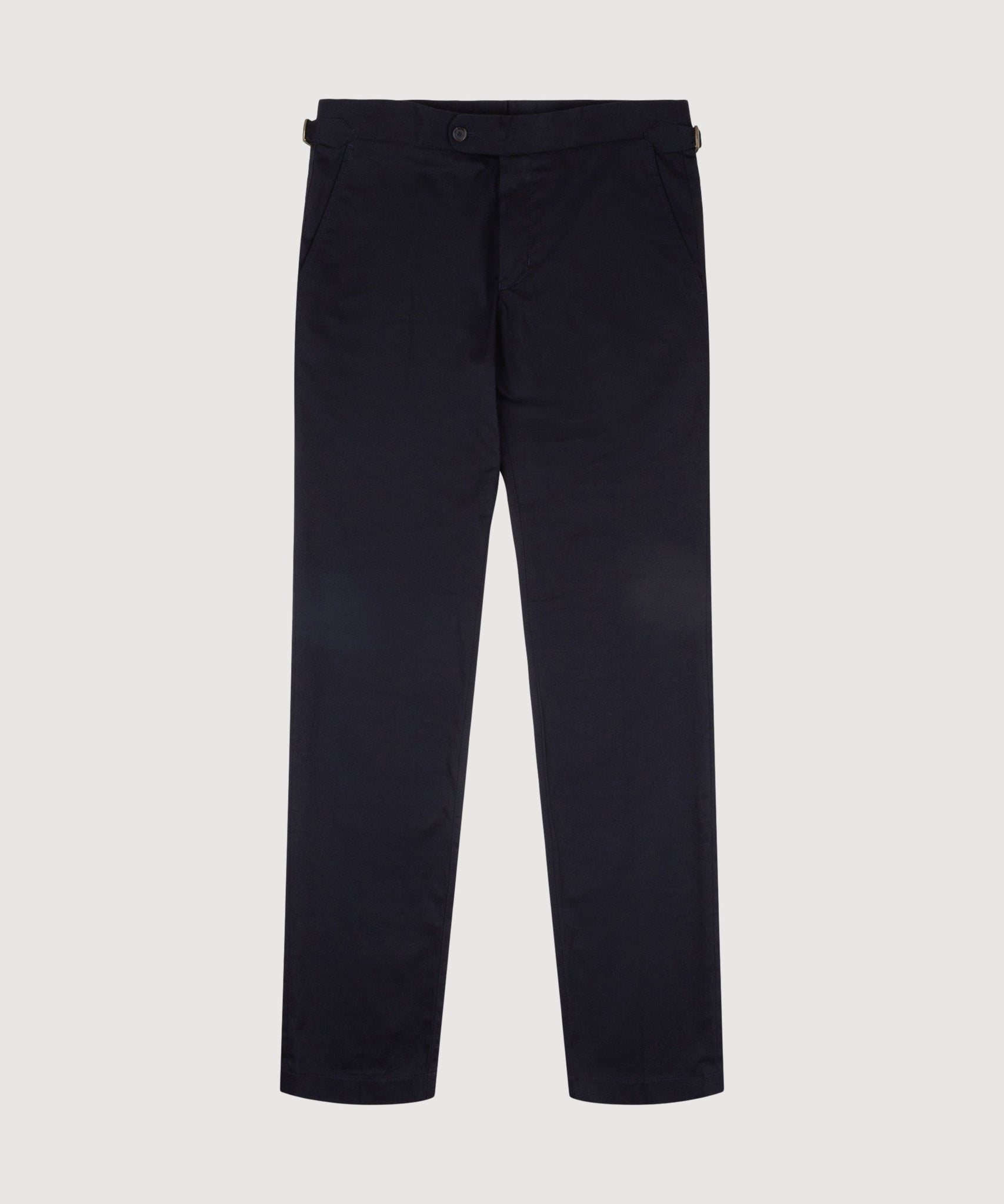 Our Dinner Trousers feature extended side adjusters instead of belt loops and are cut slightly higher than our signature trousers, allowing for a flattering sillouette and an overall polished look. This version, made from light cotton, is versatile and easy to style, pair with a shirt and blazer for a look suitable for all occasions.